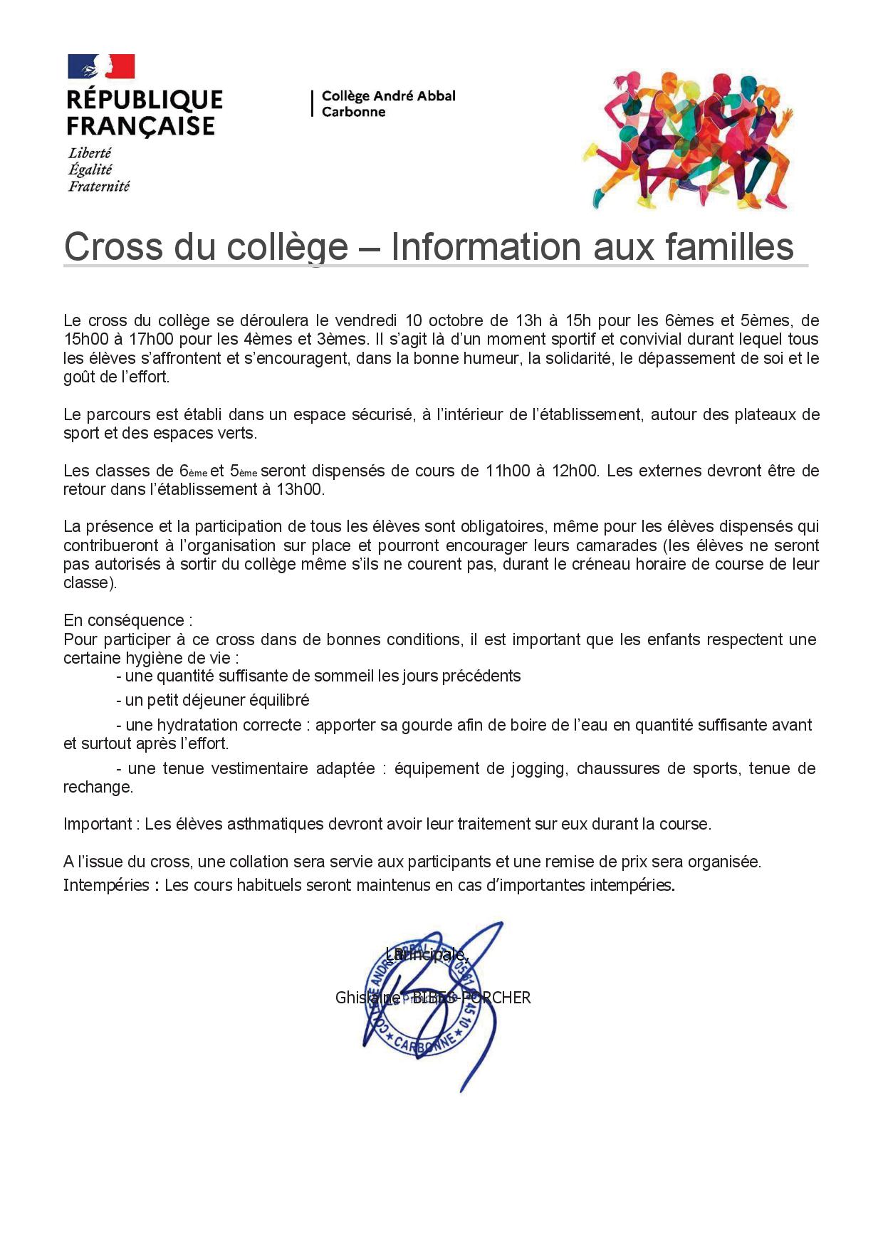 CROSS du Collège prévu le Vendredi 10 octobre 2025 - de 13H à 15H puis de 15H à 17H : TOUS les élèves